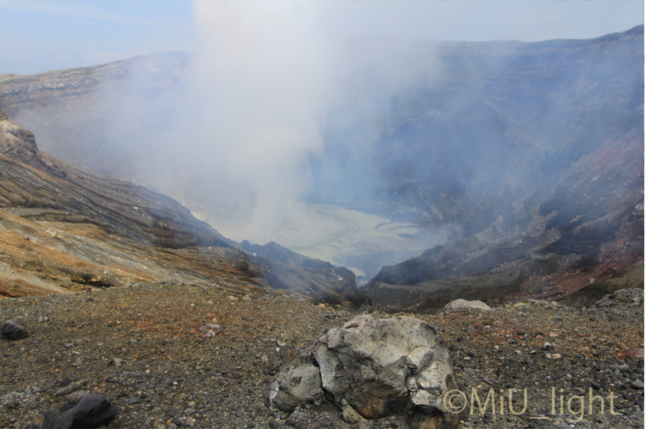2015年現在、噴火によって入山規制がなされている阿蘇山には